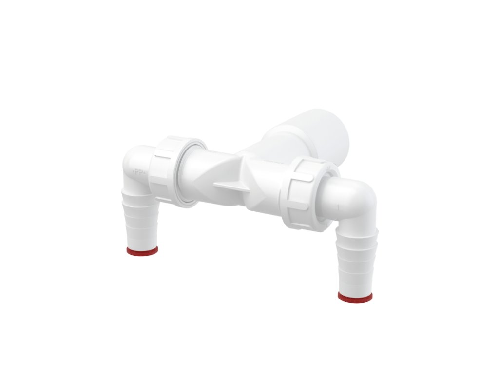 Dvojité kolienko DN 40/32 × Ø 17–23 mm pre napojenie práčky a umývačky na sifón, so spätnými klapkami