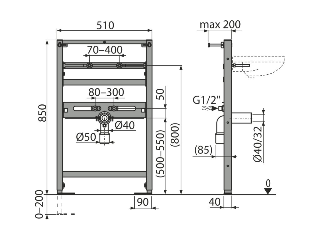 Konštrukcia rámu dovoľuje ukotvenie k samostatnej, dostatočne nosnej sadrokartónovej priečke alebo pred nosnú stenu