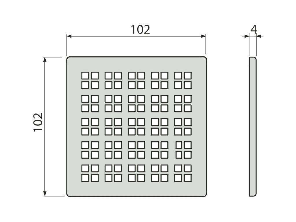 Mriežka pre nerezové vpuste 102×102 mm nerez-mat