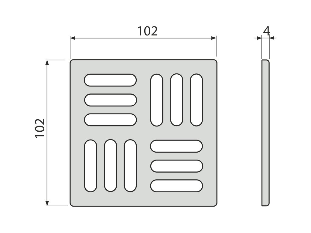 Mriežka pre nerezové vpuste 102×102 mm nerez-mat