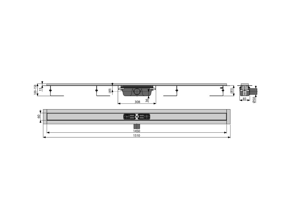 Podlahový žľab z nerezovej ocele (zušľachtenie materiálu morením a pasiváciou, elektrochemické preleštenie)