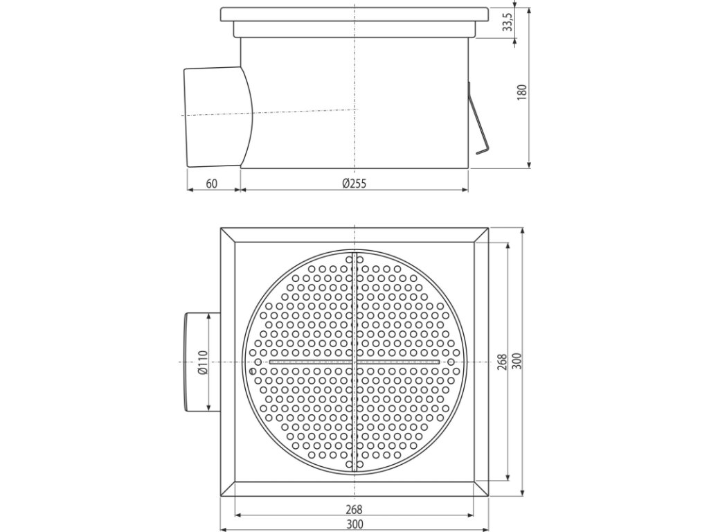 Priemyselná bodová vpusť 300×300, nerez AISI 304