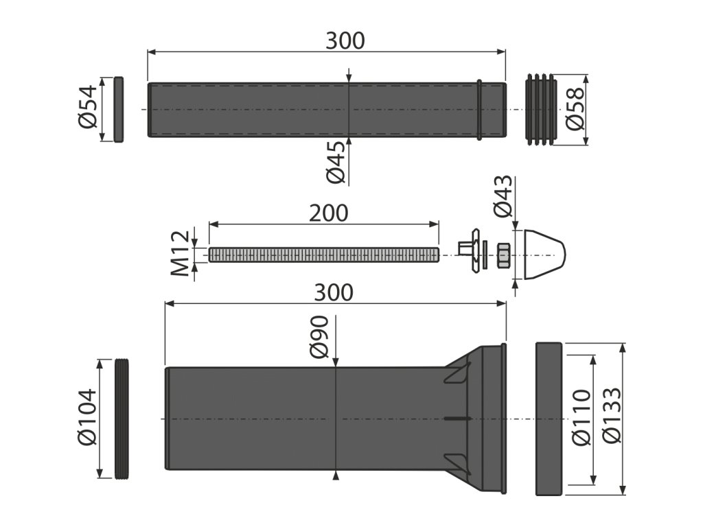 Pripojovacia sada k závesnému WC pre osoby so zníženou schopnosťou pohybu – DN90, 300 mm, PE, biela