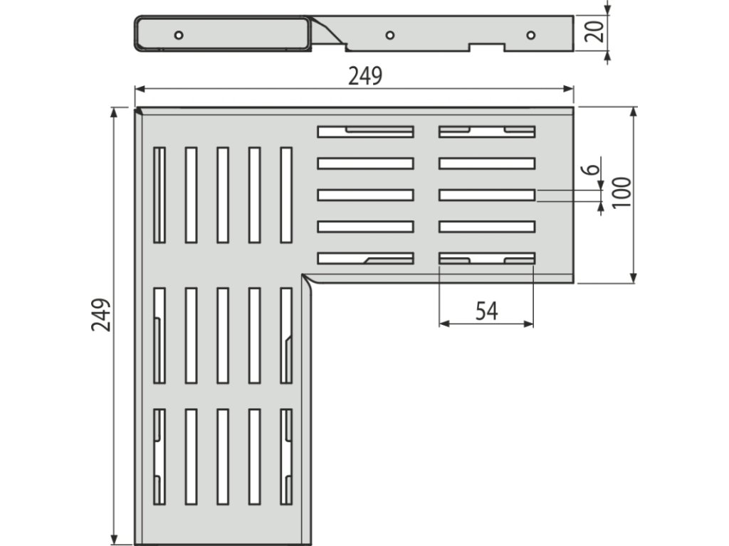 Rošt pre drenážny žľab rohový 100 mm, pozinkovaná oceľ
