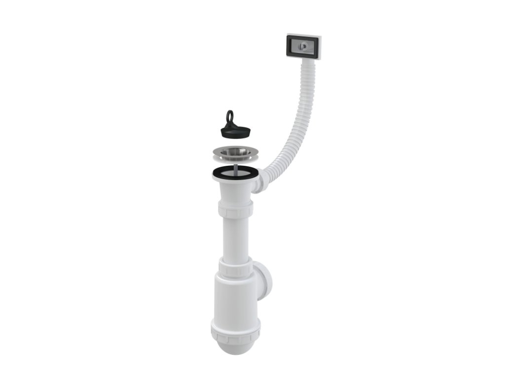 Vývod odpadu pripravený pre napojenie odpadovej rúrky Ø50 mm alebo Ø40 mm