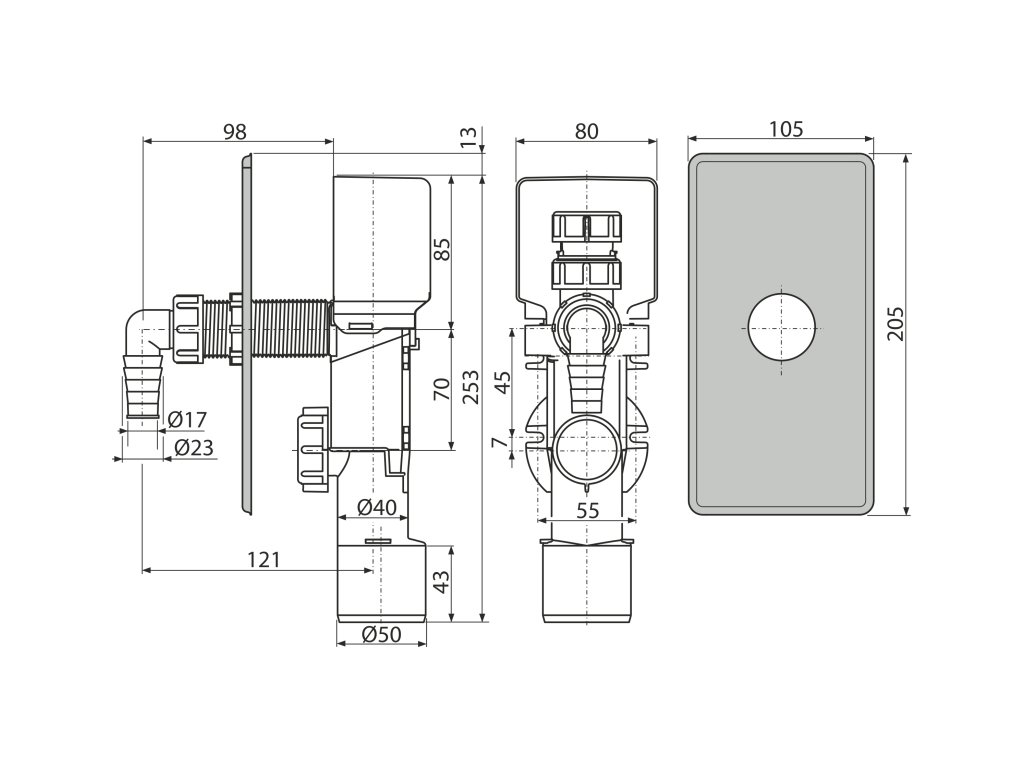 Telo sifónu s privzdušňovacím ventilom