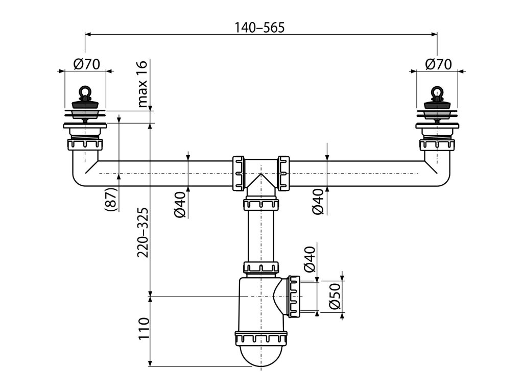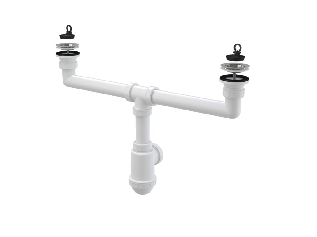 Sifón pre dvojdrez DN 40/50 s nerezovými mriežkami Ø 70 mm, gumová zátka
