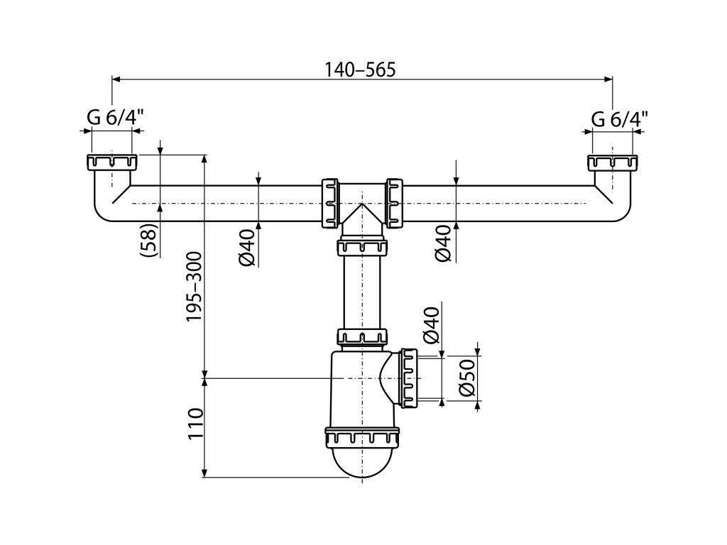 Sifón pre dvojdrez DN 40/50 s prevlečnými maticami G 6/4"