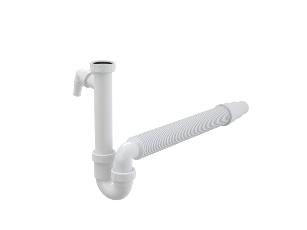 Sifón trubkový drezový DN 50/40 s prípojkou Ø 17–23 mm, prevlečnou maticou G 6/4" a flexi hadicou