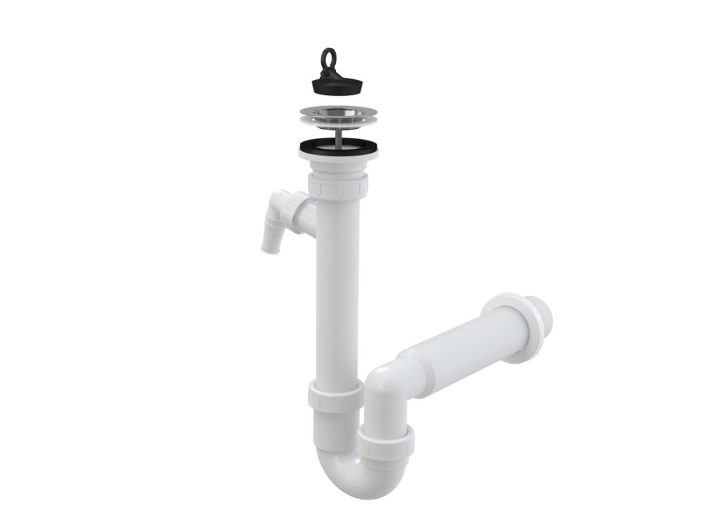 Sifón trubkový drezový DN 50 s nerezovou mriežkou Ø 70 mm a prípojkou Ø 17–23 mm, gumová zátka