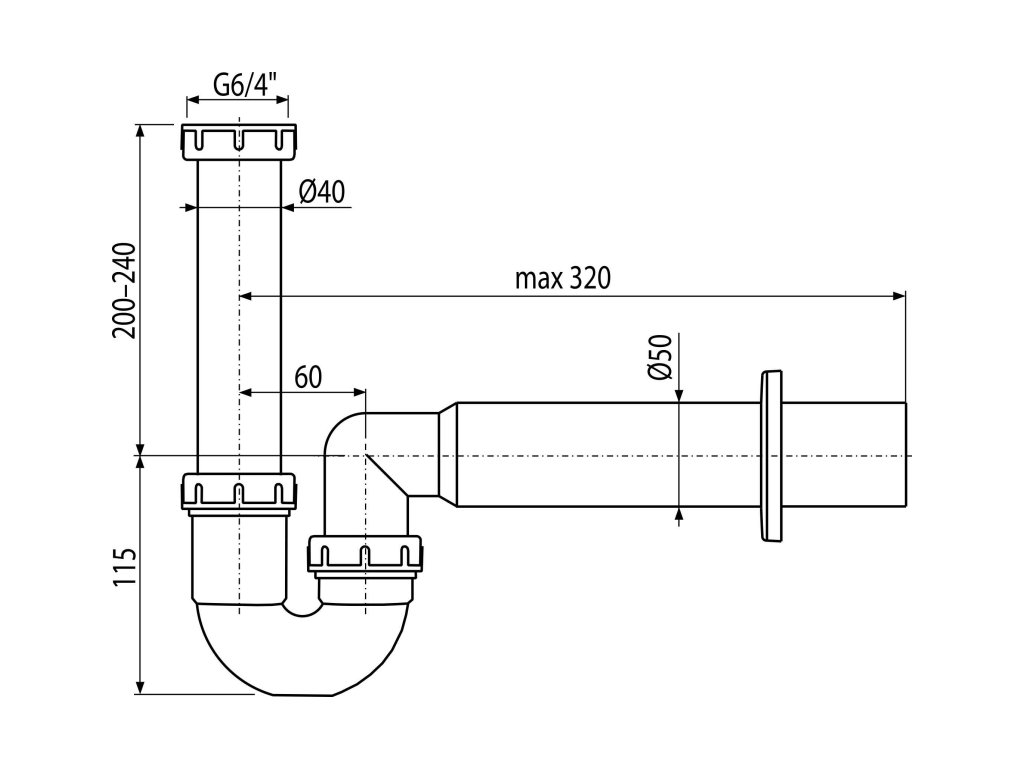 Sifón trubkový drezový DN 50 s prevlečnou maticou G 6/4"