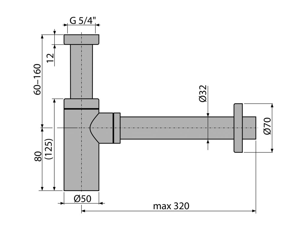 Sifón umývadlový DN 32 DESIGN, guľatý, kov, GUN METAL-lesk