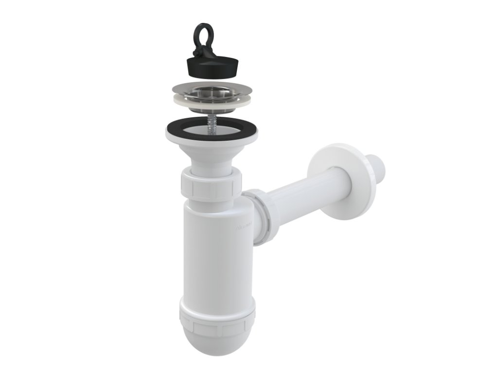 Sifón umývadlový DN 32 s nerezovou mriežkou Ø 62 mm, gumová zátka