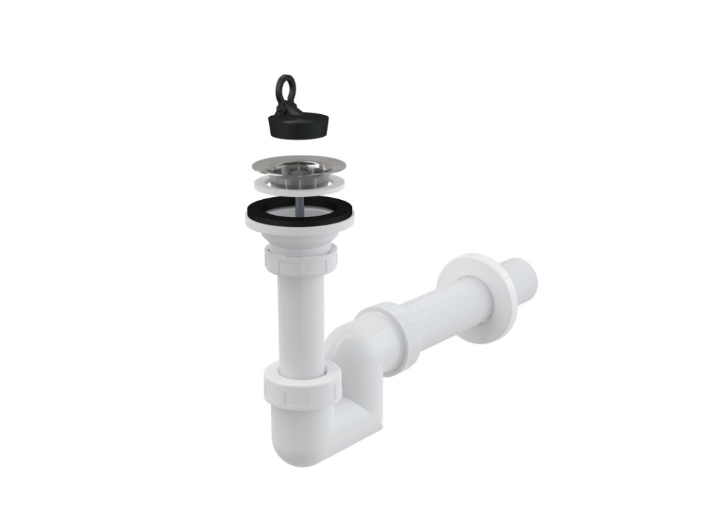 Sifón umývadlový DN 40 priestorovo úsporný s nerezovou mriežkou Ø 62 mm, gumová zátka