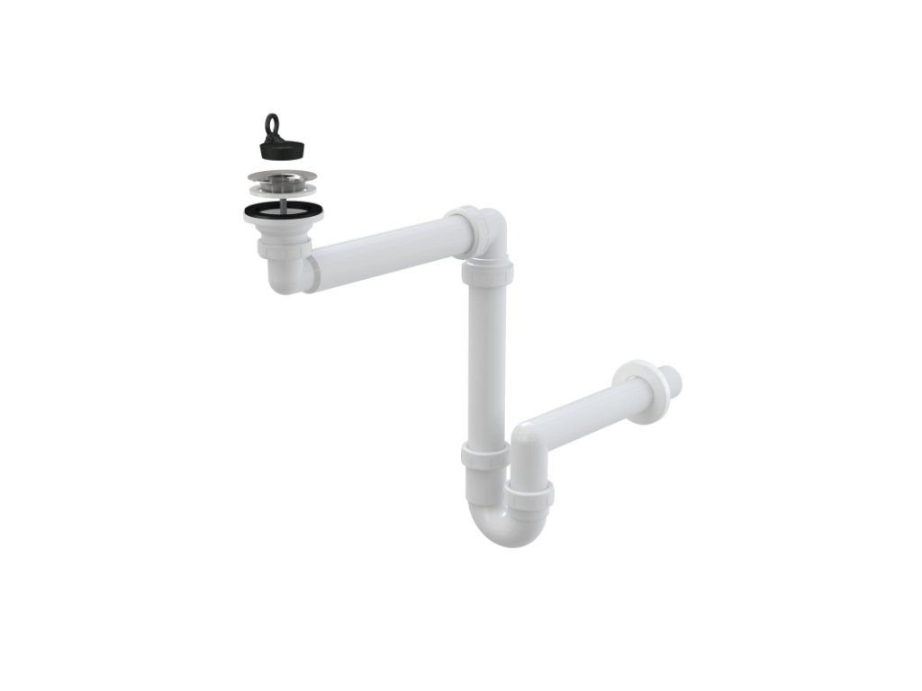 Sifón umývadlový DN 40 priestorovo úsporný s nerezovou mriežkou Ø 62 mm