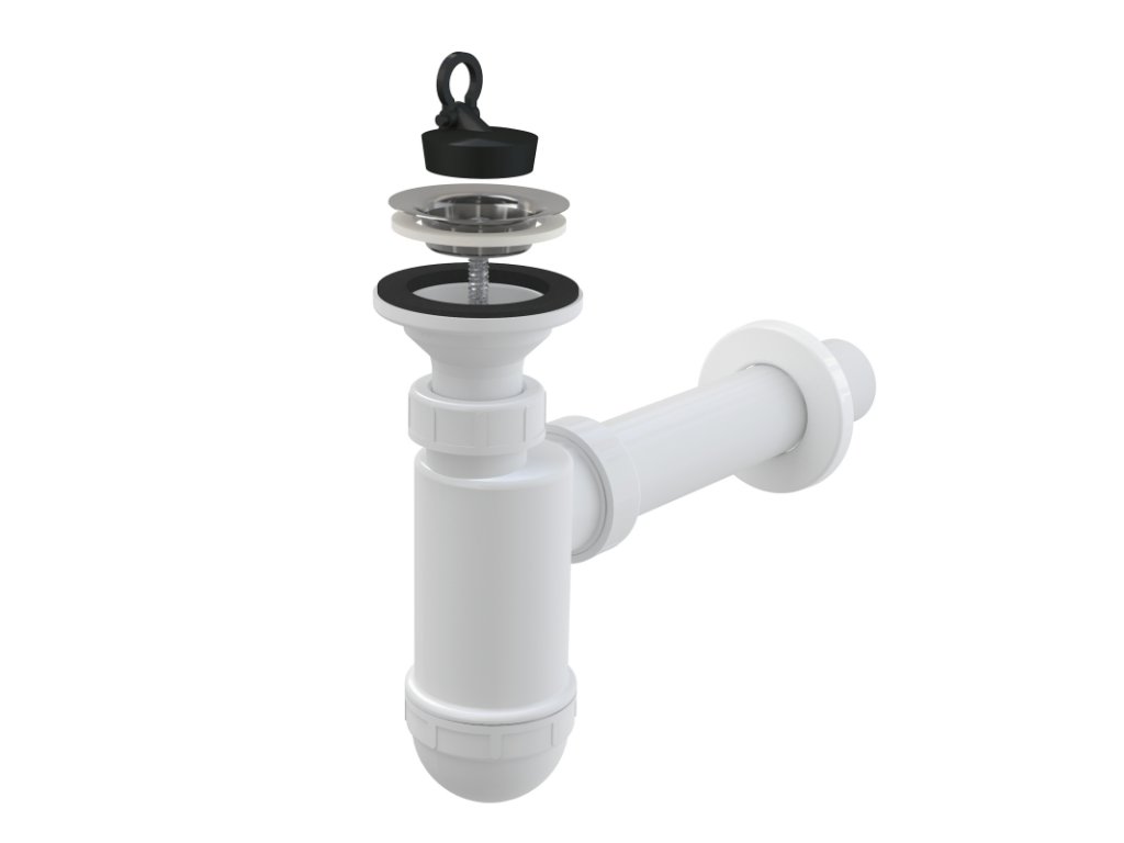 Sifón umývadlový DN 40 s nerezovou mriežkou Ø 62 mm, gumová zátka