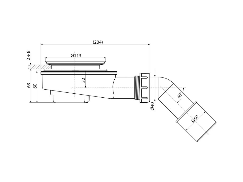 Sifón vaničkový, znížený, pre otvor 90 mm, DN 50