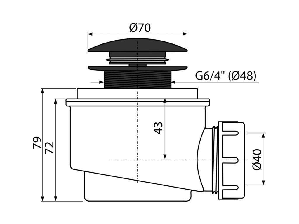 Sifón vaničkový CLICK/CLACK, pre otvor 50 mm, DN 40, kov, čierna-mat