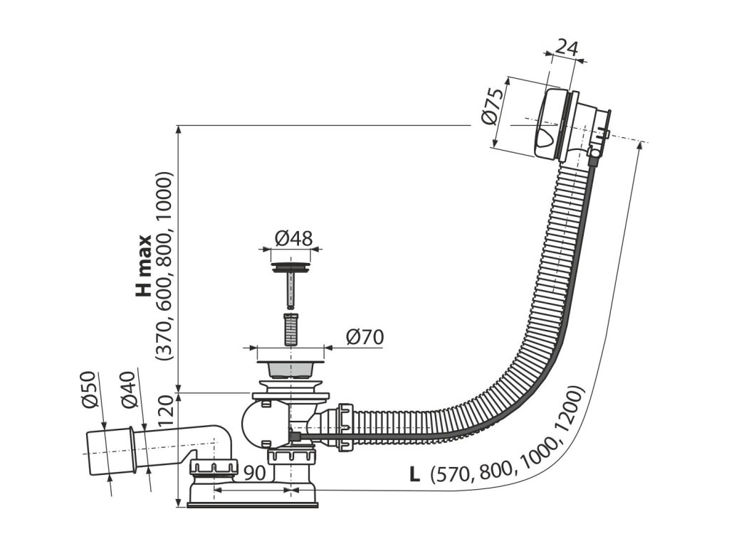 Sifón vaňový automat komplet, chróm/biela-lesk