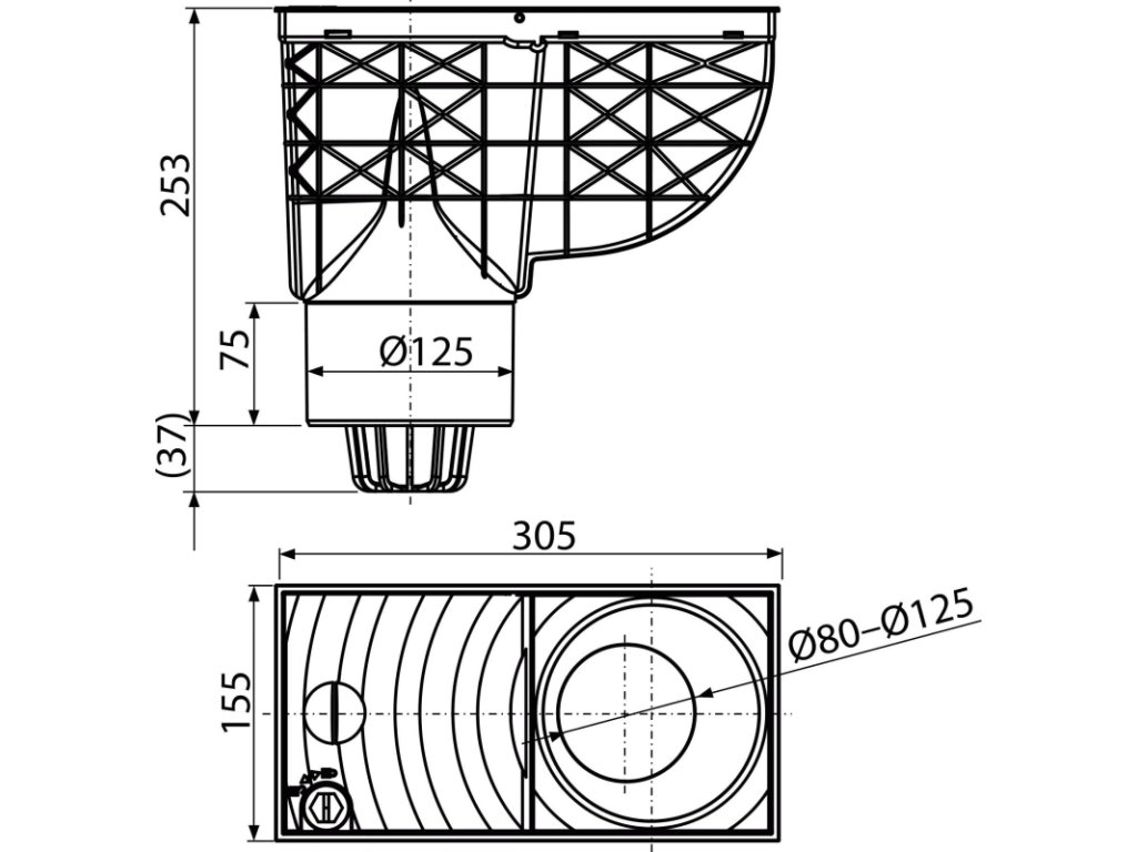Univerzálny lapač strešných splavenín 300×155/125 mm priamy, čierna