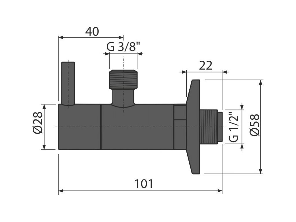 Ventil rohový s filtrom 1/2" × 3/8", guľatý, čierna-mat