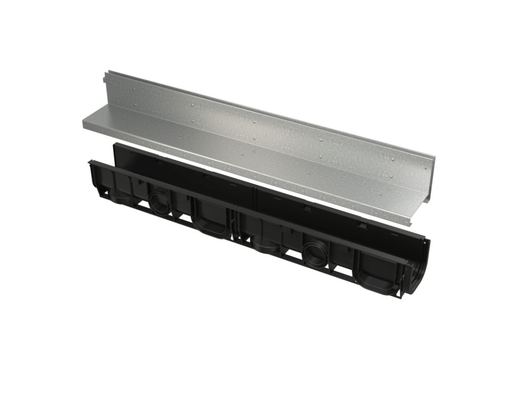 Vonkajší žľab štrbinový s asymetrickým nástavcom 100 mm, pozinkovaná oceľ