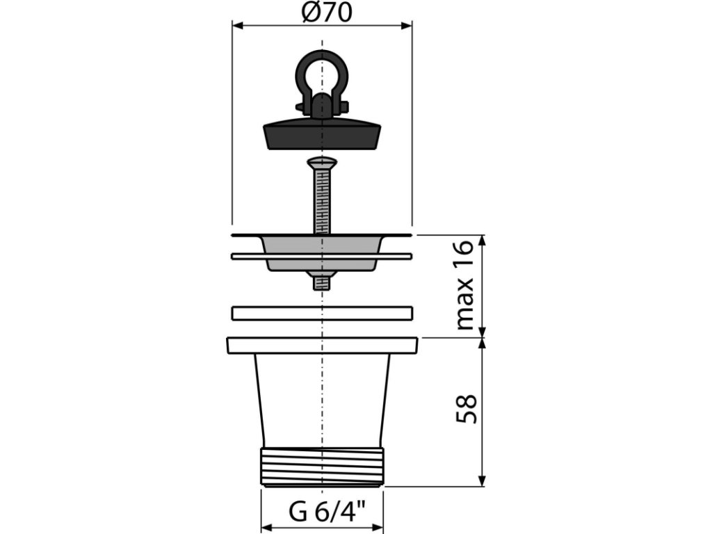 Výpusť drezová zvýšená G 6/4" s nerezovou mriežkou Ø 70 mm, gumová zátka