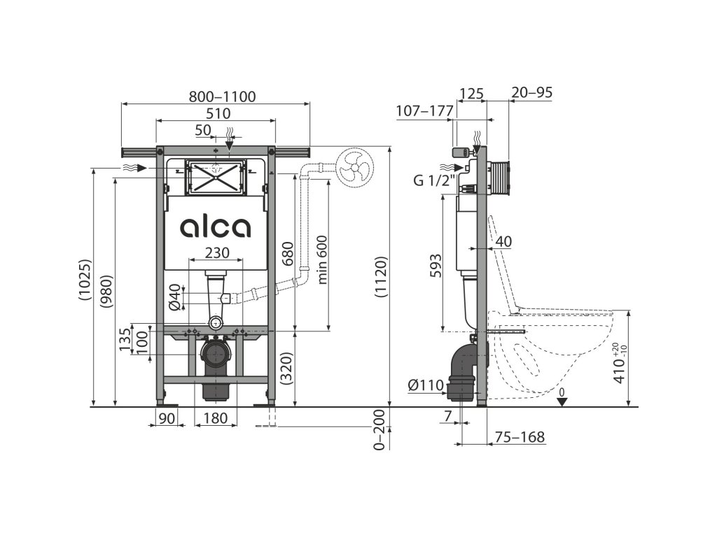 Pre montáž závesného WC s pripojovacím rozstupom 180 mm alebo 230 mm