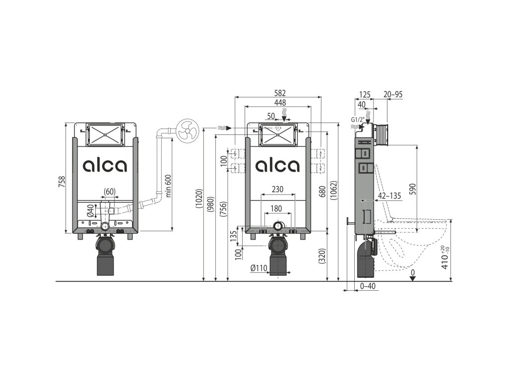 Použití:Pre montáž závesného WC s pripojovacím rozstupom 180 mm alebo 230 mm